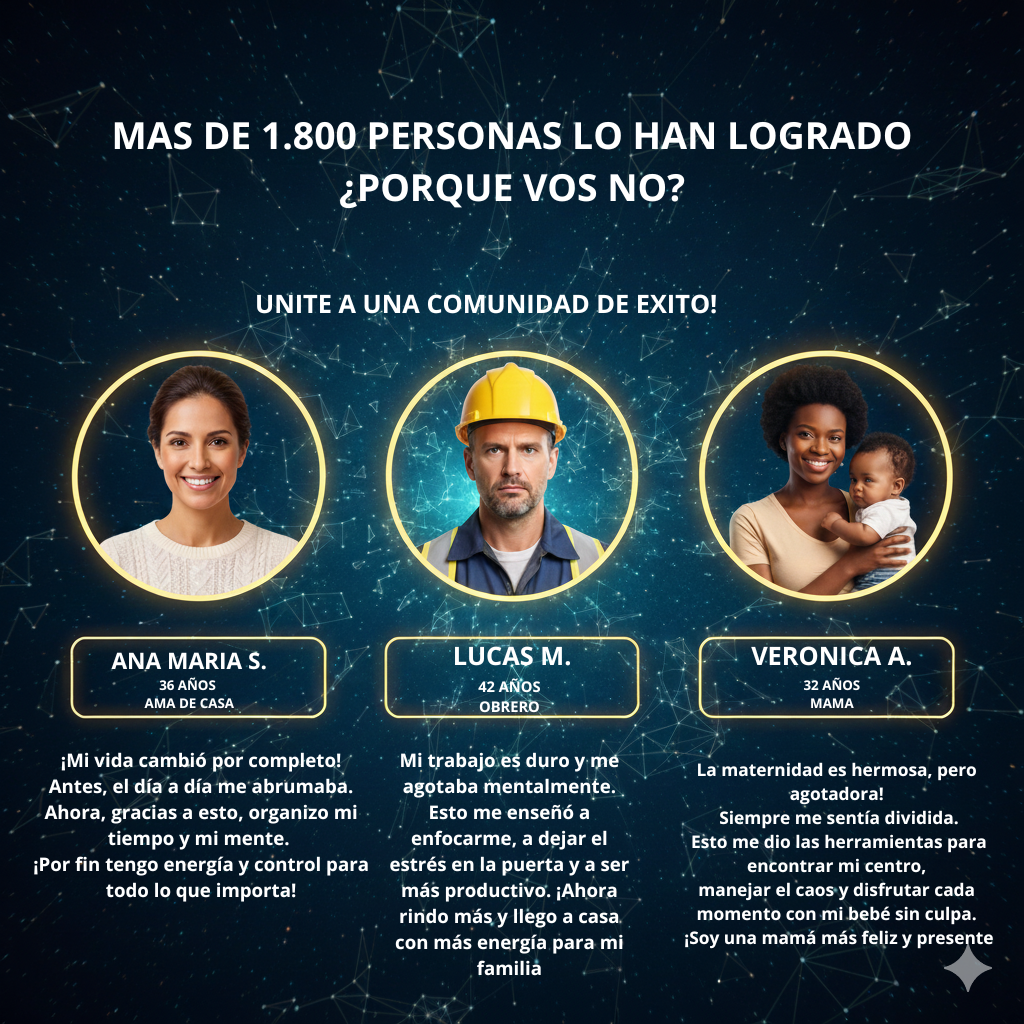 Lo más loco es que ese cambio interno se vio afuera. Empecé a reaccionar distinto, y mi gente también. Mi pareja, mis hermanos... de golpe todo era más tranquilo. Yo cambié mi chip y el mundo me devolvió la calma. Si tu vida relacional es un caos, posta, probá este eBook. Es el quiebre que necesitás.
