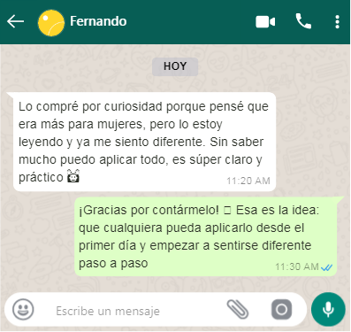 A ver, seamos sinceros: mi vida amorosa y con mi familia era un desastre total. Vivía discutiendo, frustrada, y sentía que estaba condenada a tener relaciones súper tóxicas. Cuando compré el eBook 'Del Pensamiento a la Realidad', lo hice sin fe, ¡cero expectativas! Era la típica compra de 'bueno, no pierdo nada'. La cosa es que en solo una semana (¡siete días literales!) mi cabeza hizo click. Este libro no te da tips superficiales; te desarma la forma en que ves el mundo. Me hizo entender por qué mi cabeza creaba tanto quilombo en mis relaciones. Lo más loco es que ese cambio interno se vio afuera. Empecé a reaccionar distinto, y mi gente también. Mi pareja, mis hermanos... de golpe todo era más tranquilo. Yo cambié mi chip y el mundo me devolvió la calma. Si tu vida relacional es un caos, posta, probá este eBook. Es el quiebre que necesitás.